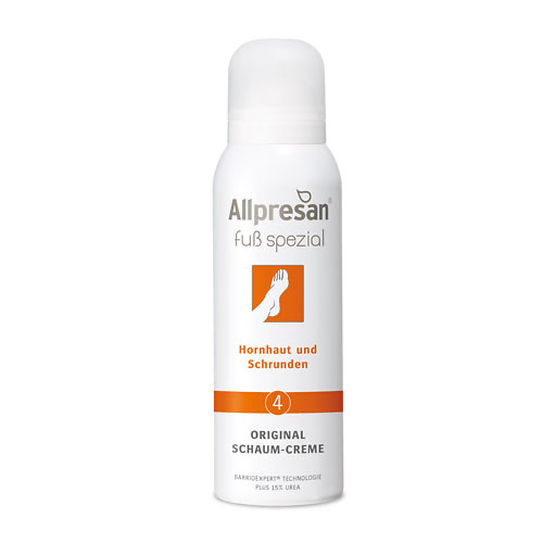 Die Allpresan® Fuß spezial 4 Original Schaum-Creme bei Hornhaut und Schrunden reduziert Verhornungen und Schrunden auf natürliche Weise. Des Weiteren schützt sie vor der Neubildung von Hornhaut und regeneriert die Hautbarriere.