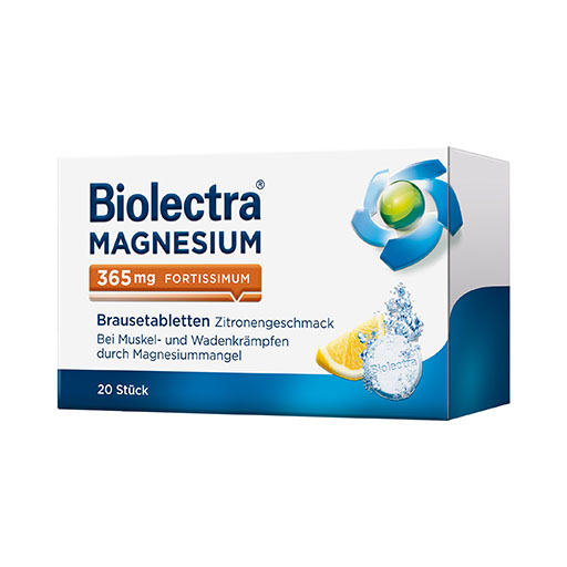 Bei Muskel- und Wadenkrämpfen ist oft ein Magnesiummangel für die Beschwerden verantwortlich. In diesem Fall hat sich die Einnahme von Biolectra® Magnesium 365 mg fortissimum Brausetabletten bewährt.