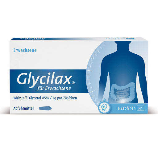 Glycilax® mit dem Wirkstoff Glycerol ist ein mildes Präparat zur Förderung der Verdauung, indem es den Darminhalt aufweicht und die Gleitfähigkeit des Stuhls erhöht. Dadurch kann der Stuhlgang angeregt und die Entleerung erleichtert werden.