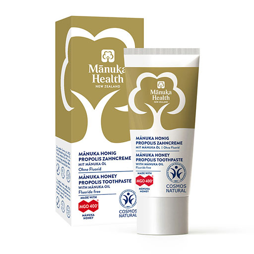 Diese Zahncreme mit hochwertigem Mānuka Honig und ohne Titandioxid wirkt antibakteriell und schützt vor Karies.