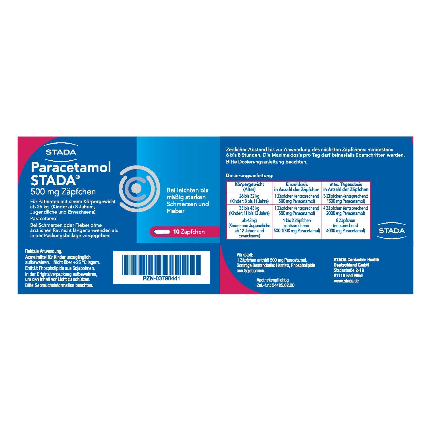 PARACETAMOL STADA 500 mg Zäpfchen 10 St