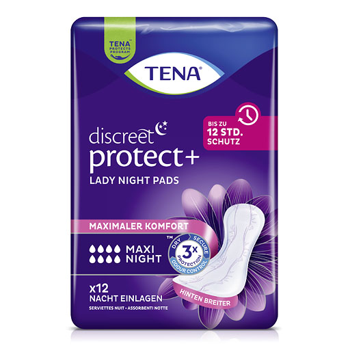TENA Lady Discreet Maxi Night Einlagen sorgen für sicheren Schutz und Trockenheit über Nacht. Für einen ungestörten Schlaf bei Inkontinenz.