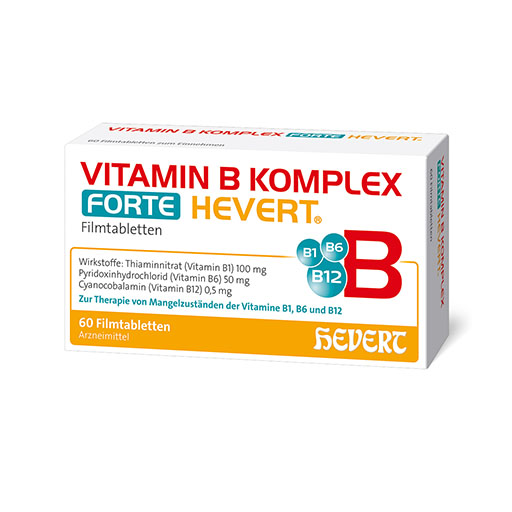 Vitamin B Komplex forte Hevert – der hochdosierte Neuro-Tri-Komplex mit Vitamin B1, B6 und B12. Versorgt den Körper schnell und hochdosiert mit B-Vitaminen und lindert Symptome eines Vitamin B-Mangels.